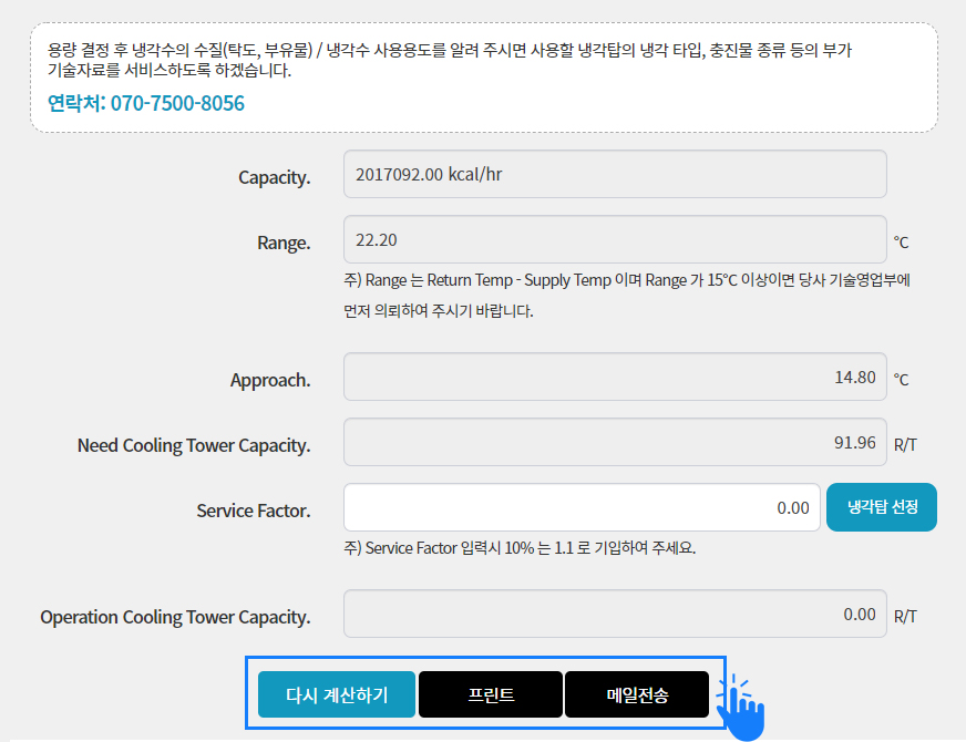 사용할 냉각탑 용량이 결정됩니다.
